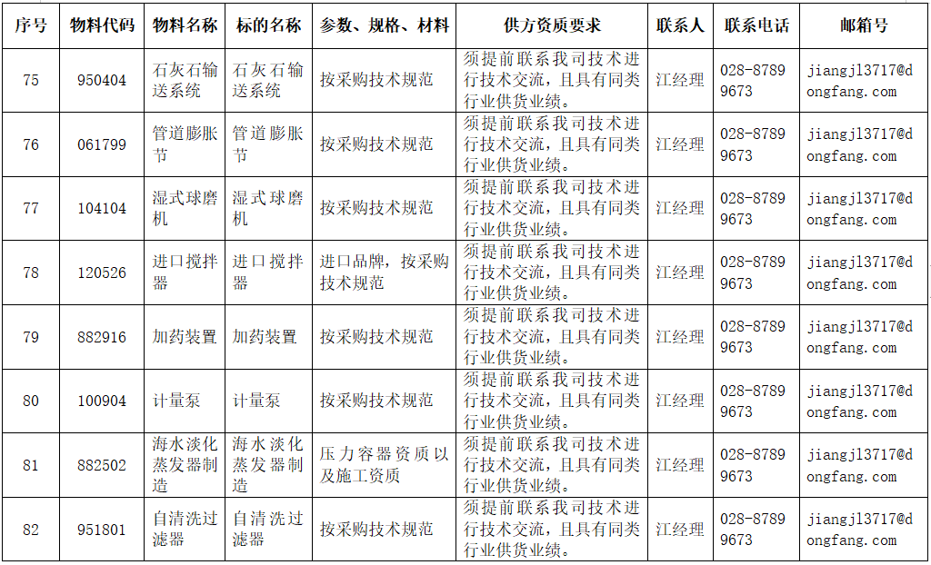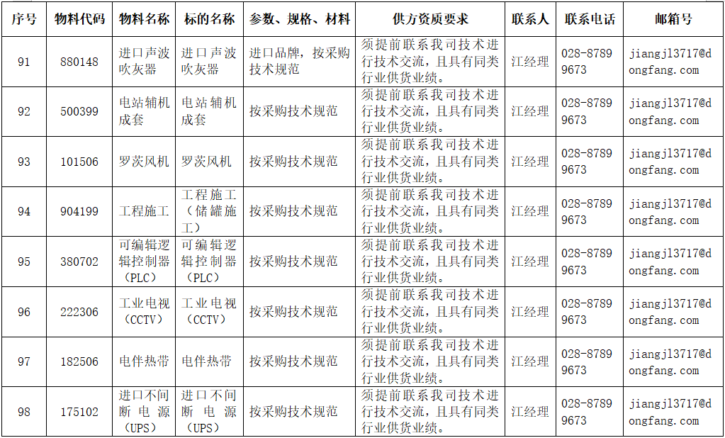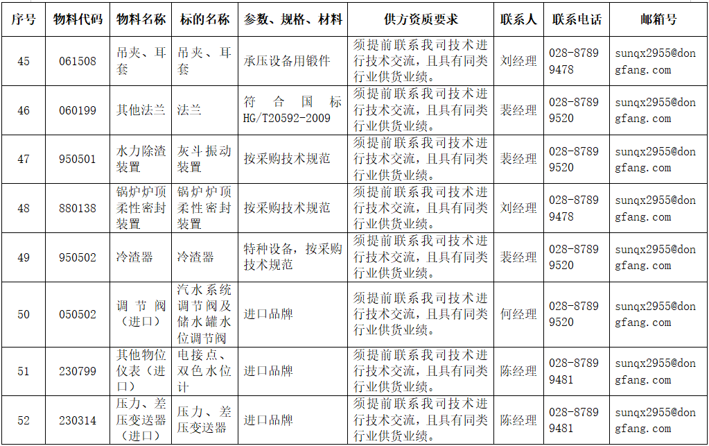东方电气集团东方锅炉股份有限公司供应商公开寻源公告