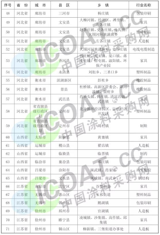 2020年7月1日起,船舶涂料和地坪涂料生产、销售和使用应满足新颁布实施的国家产品有害物质限量标准要求。京津冀地区建筑类涂料和胶粘剂产品须满足《建筑类涂料与胶粘剂挥发性有机化合物含量限值标准》要求。督促生产企业提前做好油墨、胶粘剂、清洗剂及木器、车辆、建筑用外墙、工业防护涂料等有害物质限量标准实施准备工作,在标准正式生效前有序完成切换,有条件的地区根据环境空气质量改善需要提前实施。