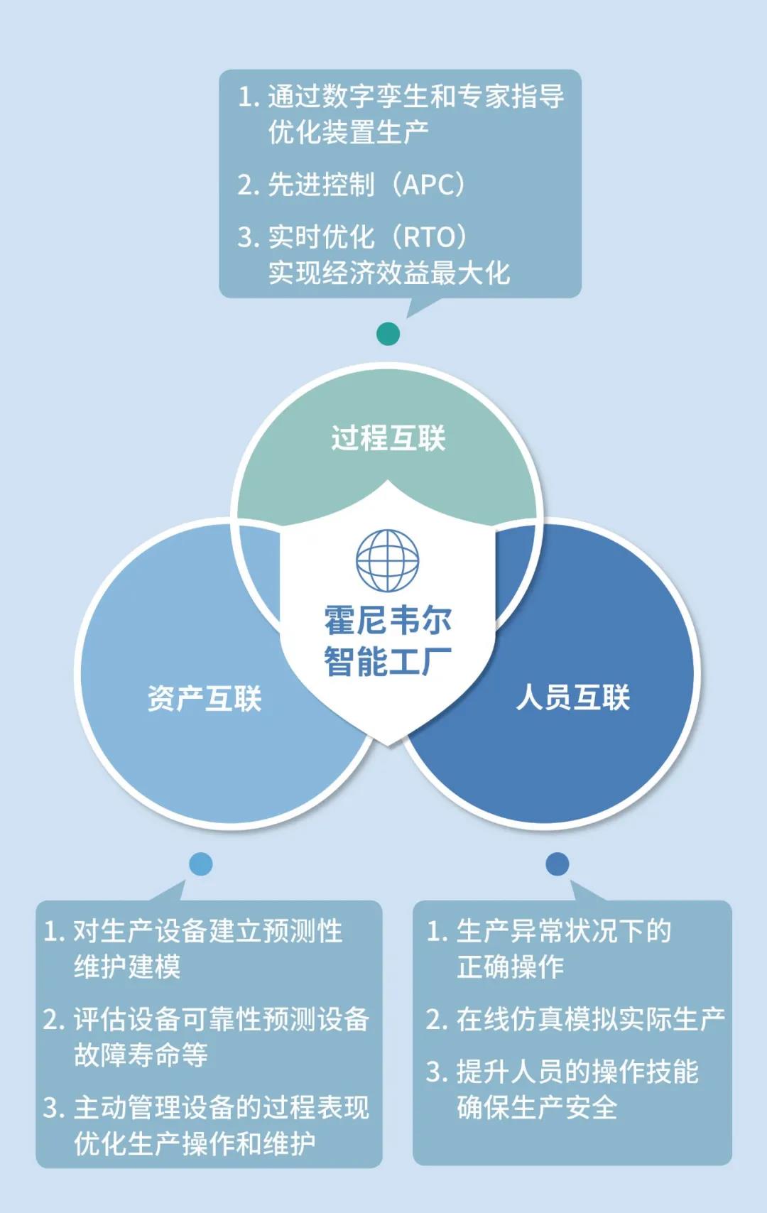 在霍尼韦尔看来,数字化新技术和工业制造融合需重点关注企业在安全生产前提下的运营优化和决策。基于对行业应用的深度洞察和优化,霍尼韦尔打造智能工厂,实施对过程、资产、人员的互联,帮助工业用户提升运营的安全性、高效性和可靠性。