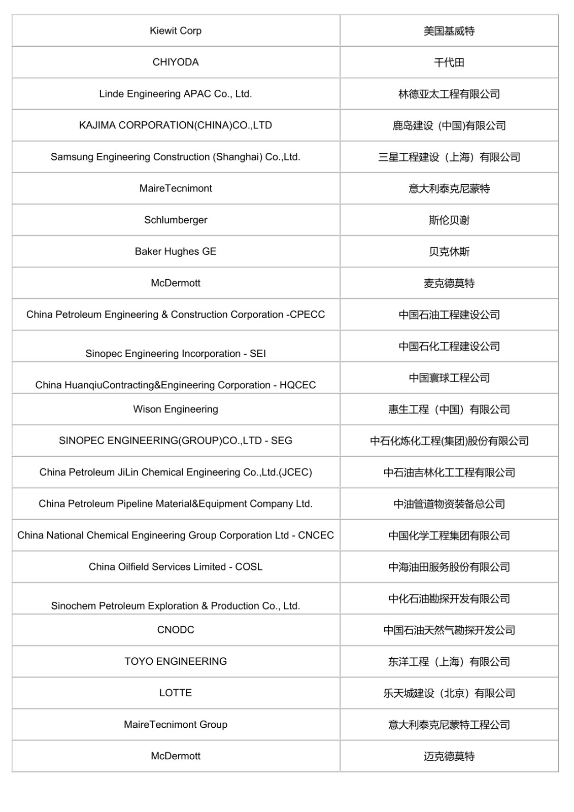 目前,众多行业领军企业纷纷报名参会,与来自 国内外石油化工行业高层、采购专家和优秀供应商决策层交流最新行业趋势、项目管理解决方 案、采购供应链管理理念、采购经验、采购计划、项目动态、最新技术产品等前沿信息。相信中国优秀设备商的展示和交流将引起来自全球石油石化业主、工程公司、行业采购专家和合作方的浓厚兴趣,必将增进与采购商的长期合作,加速布局全球市场,占领更多市场份额。