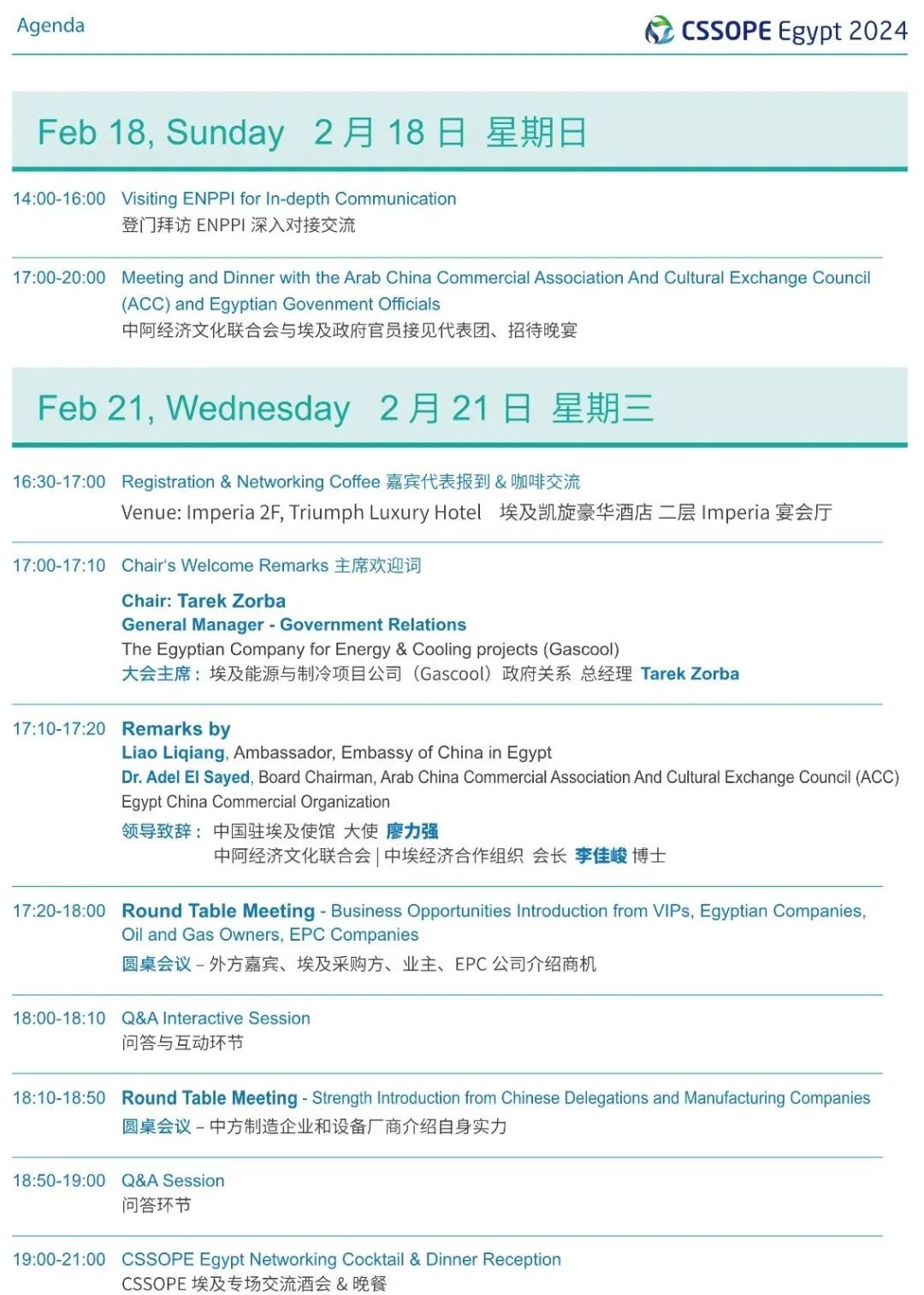 感谢您报名参加于2024年2月21日在埃及开罗举办的“埃及采购专场——中国石油化工装备采购国际峰会(CSSOPE Egypt 2024)”。为了方便您参会,请仔细阅读下列注意事项: