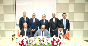当地时间10月13日,中国化学董事长莫鼎革、印度拉玛控股公司执行董事穆库尔·阿格拉沃尔、埃及磷酸盐公司董事长穆罕默德·阿卜杜勒-阿齐姆...