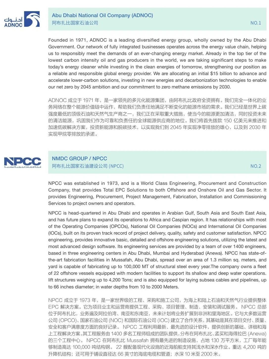 作为同期活动,由东方尚能咨询机构(TOPCO)举办的“第二届阿联酋采购专场 —— 中国石油化工装备采购国际峰会(CSSOPE UAE)”也将于11月6日在皇宫酒店召开。主办方将组织企业与ADNOC及NMDC等当地业主和EPC公司采购高层座谈、晚宴交流、一对一对接会、登门拜访等安排形式多样的对接活动,他们未来项目都会有向本次参会的中方企业倾斜机会。CSSOPE UAE 客户对接会是您参展ADIPEC期间最有效的客户对接方式,跟团报名即将截止,敬请联系抢定有限名额。详询 秦女士:158 0112 8545