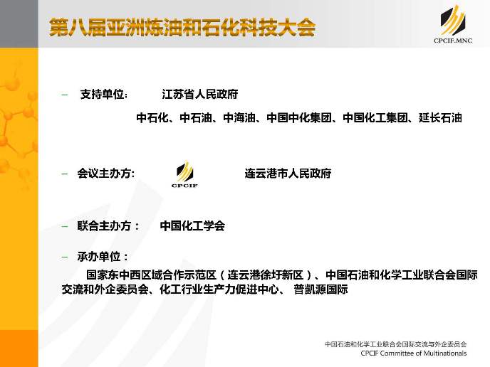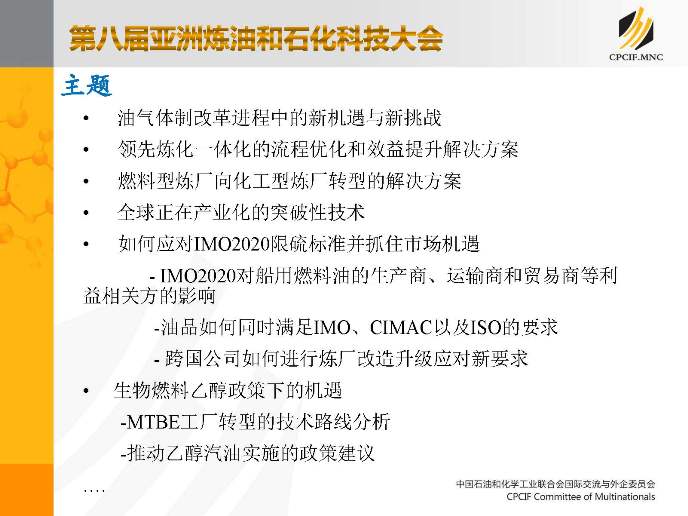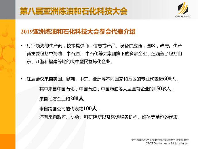 您现在的位置是:首页 > 会议活动网站首页会议活动 第八届亚洲炼油和石化科技大会曁 亚洲石化科技与装备展览会 管理员 2022-10-25 10957 次阅读 TAG: 无标签 上一篇:巴斯夫(亚太区工程设备间接采购)负责人确认出席CSSOPE 2019 下一篇:阀门流体哪家强 埃及市场潜力大 相关文章 特别推荐 【火爆出炉】CSSOPE 2025 全球采购对接会排期表 阅读 全球氢能项目大汇总,快来点击索要 阅读 随机推荐 中国化学工程第三建设有限公司58周年庆暨《筑梦辉煌... 武进不锈获评江苏省机冶石化系统“幸福企业”称号 2020-05-12 14:16:12 国际LNG项目今年或集中达成最终投资决定 2023-09-26 13:33:24 炼化工程集团与KSB公司签署境外项目采购服务承诺协议 2024-03-14 18:49:13 捷报频传!寰球公司首个海外LPG低温储罐气顶升成功 2020-08-17 08:46:37 点击排行 总投资377亿元!两大新建煤化工项目落地! 意大利塞班( SAIPEM)油气项目及采购计划:CSSOPE 为你解读 2019-03-14 15:21:04 集团公司召开2019年HSSE工作视频会议 2019-01-04 18:12:57 石油党员党建信息化平台交纳党费上亿元 2019-01-11 16:33:49 中国石油2022年集中采购招标公告 2022-02-11 20:43:22 标签 会议 中国石化新闻网 中国石油新闻中心 转载 原创 关注我们