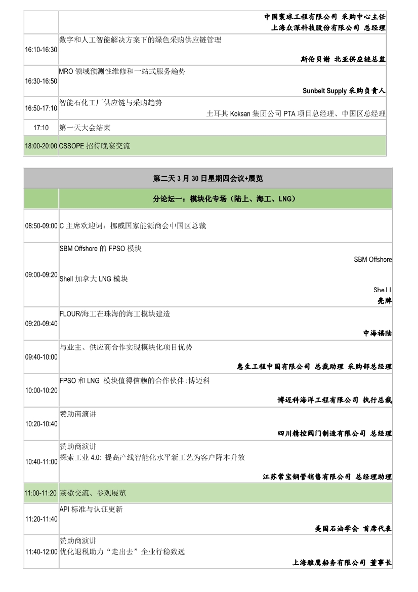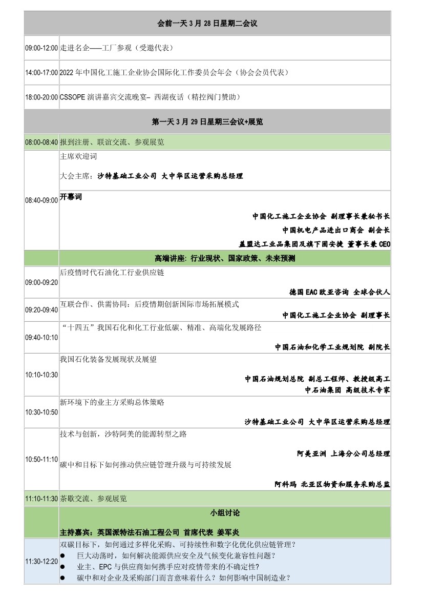 “第十二届中国石油化工装备采购国际峰会暨展览会(CSSOPE 2023)”将于2023年3月29-30日在杭州召开。大会将成为疫情后首个旨在围绕石油化工装备“引领新常态下的石油化工行业供应链:提升、转型、纳新、增长”的采购管理解决方案,为全球设备采购方与供应方提供对接交流平台,节省采购成本和提高采购效率,同时也是优秀供应商找到潜在买家和了解项目采购需求的最直接渠道。最新大会日程如下: