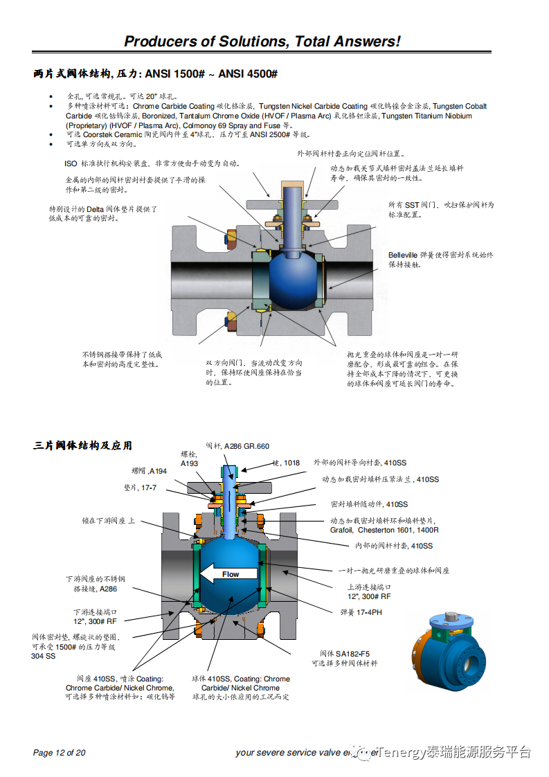 位于美国德州休斯顿的SST公司制造的恶劣工况下的金属座和陶瓷座球阀解决了工业中蒸汽,气体,剧毒气体,石灰浆,煤渣,矿浆,重油等介质的...