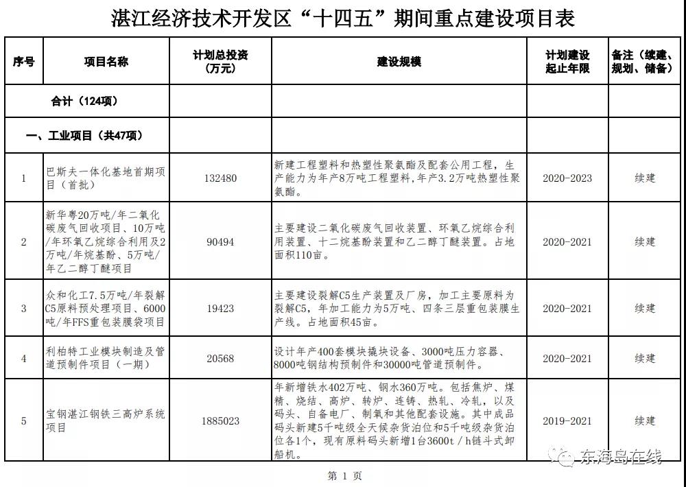 16个石化项目给出时间表,巴斯夫、陶氏均有布局!湛江经开区十四五要这样布局