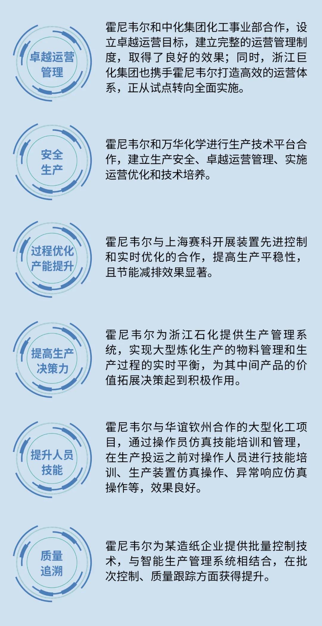从工业现场的智能设备到自动化控制系统、安全控制系统,再到卓越运营和优化软件,霍尼韦尔拥有面向流程工业不同层次的技术和解决方案,有着诸多实践案例。