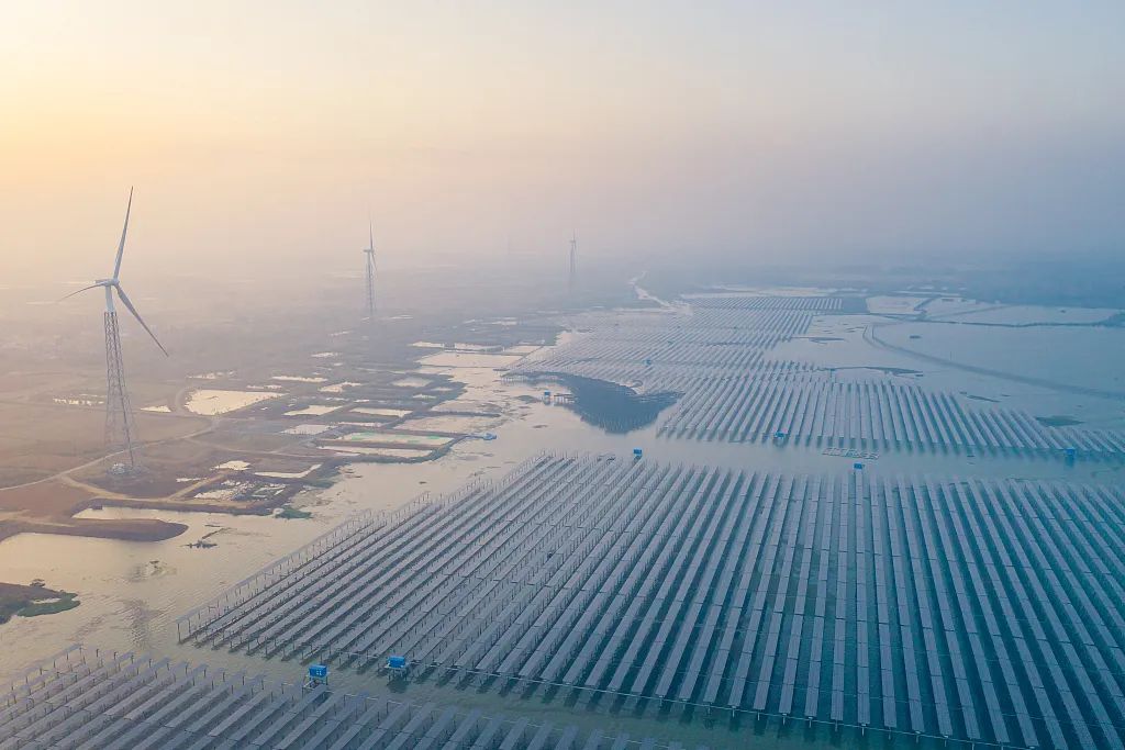 2019年11月10日,江苏省宿迁市泗洪县天岗湖光伏发电。图/视觉中国
