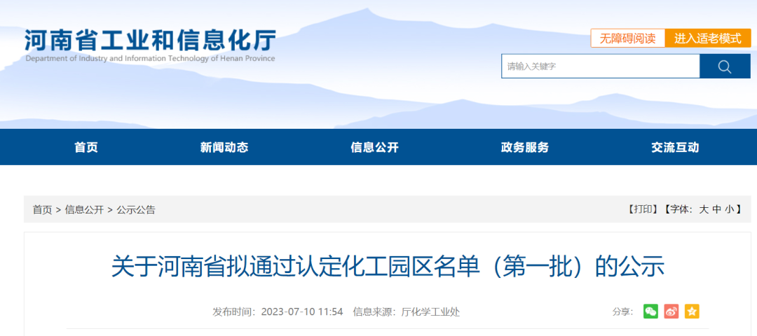 7月10日,河南省工业和信息化厅发布关于河南省拟通过认定化工园区名单(第一批)的公示,对全省第一批共计16家化工园区进行了认定审核,现将河南省拟通过认定的化工园区名单(第一批)予以公示,公示期:2023年7月10日--17日。
